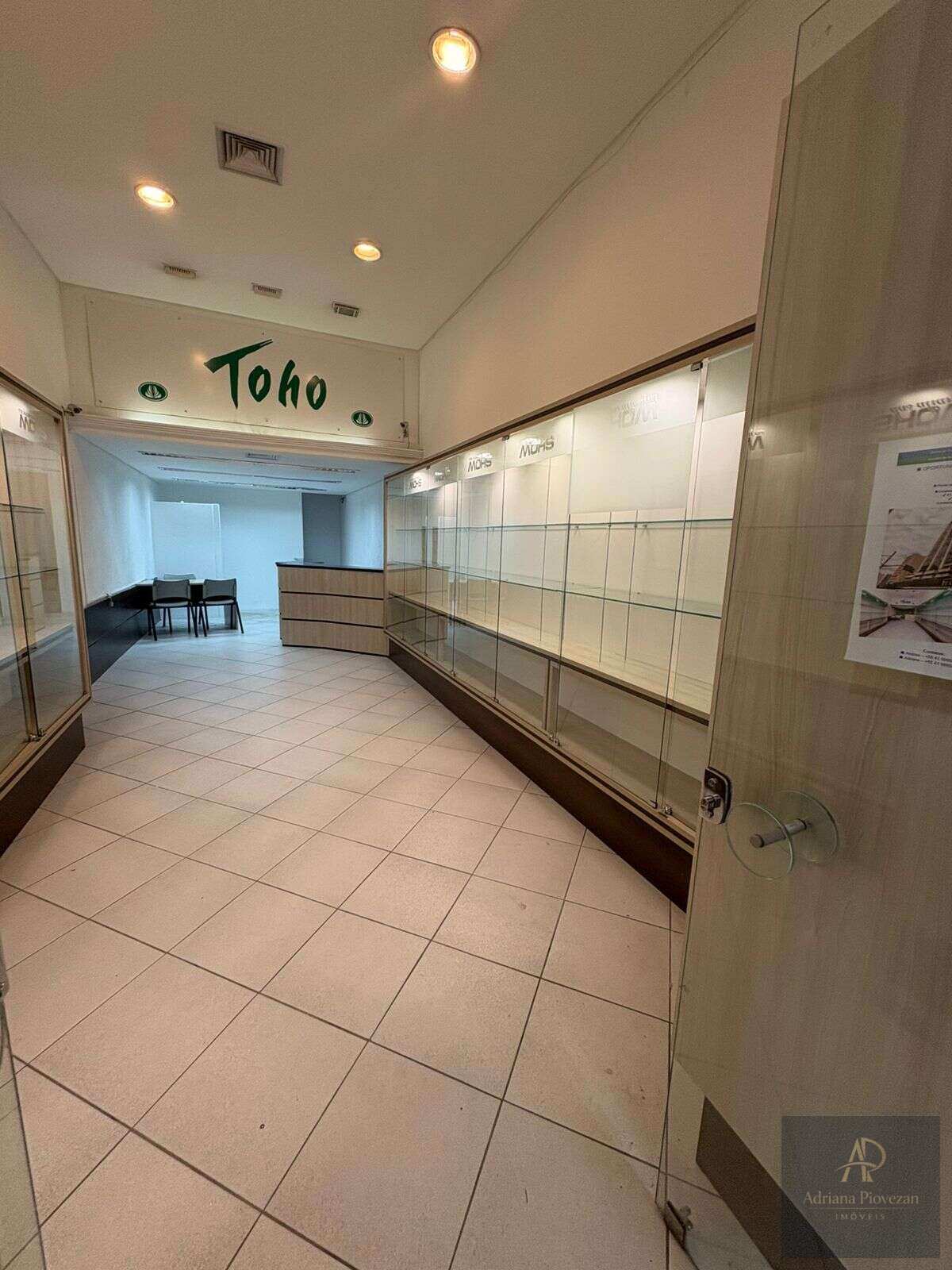 Loja mobiliada, com vitrines e expositores, no PISO ROMA (térreo).
