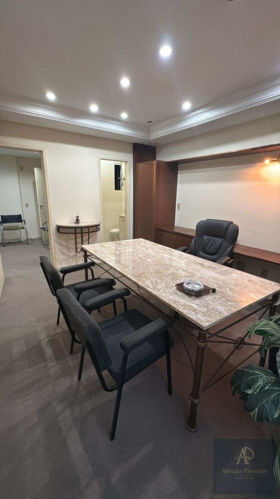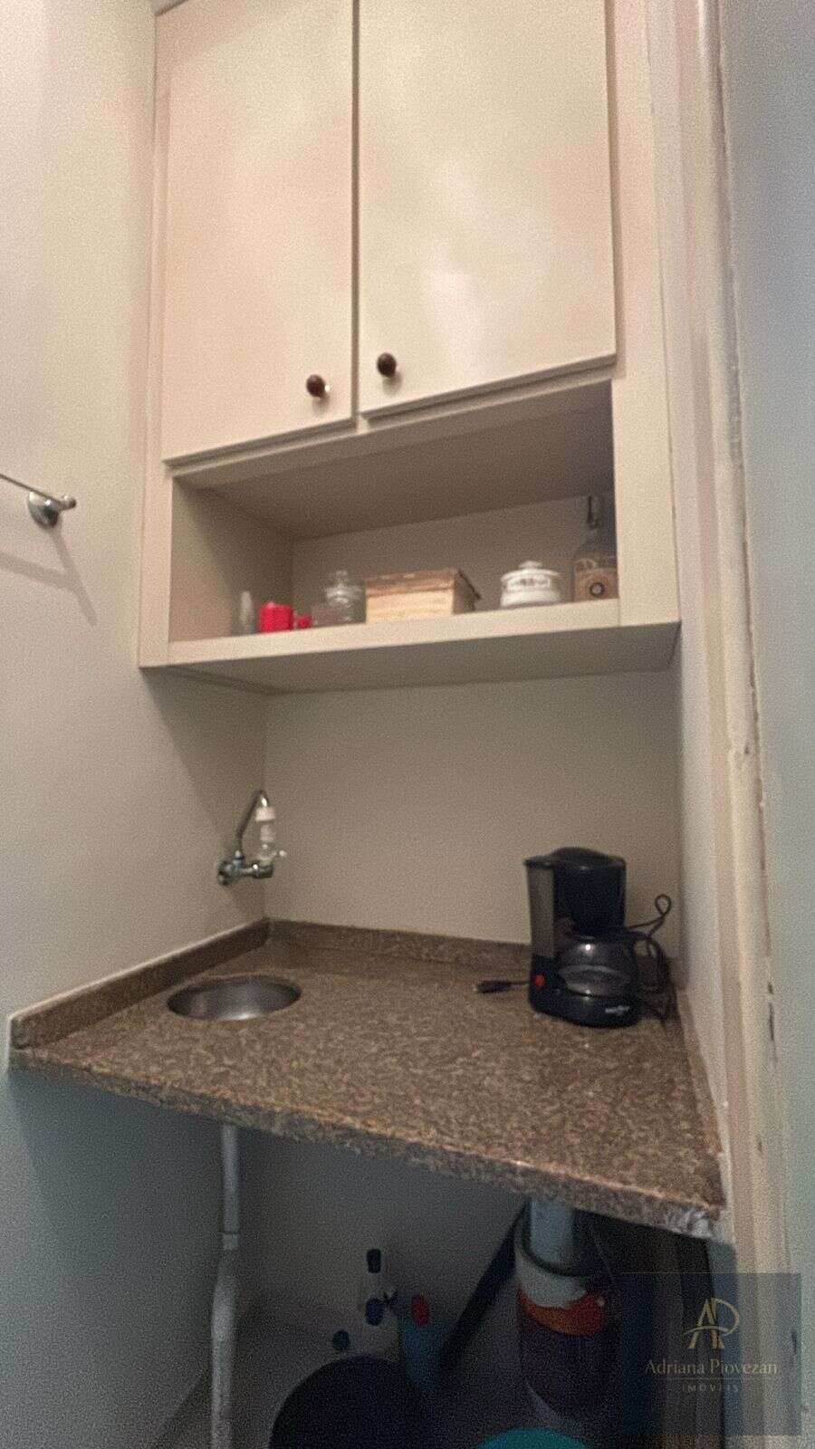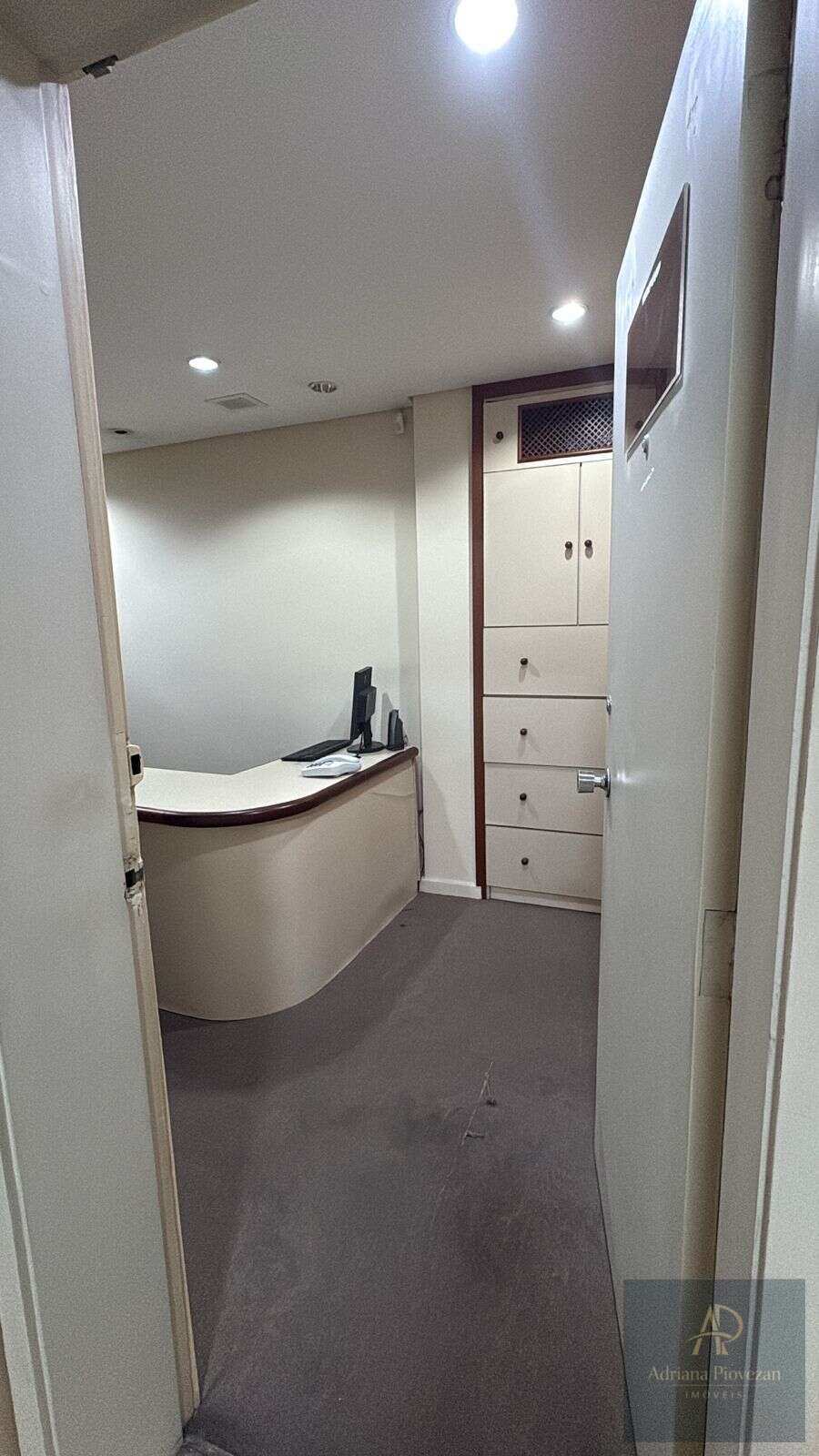São duas salas que foram integradas e compartilham a recepção e a copa.